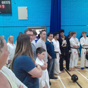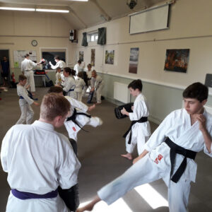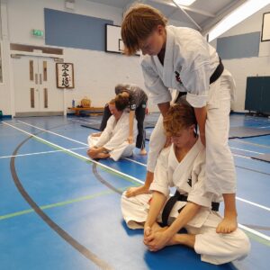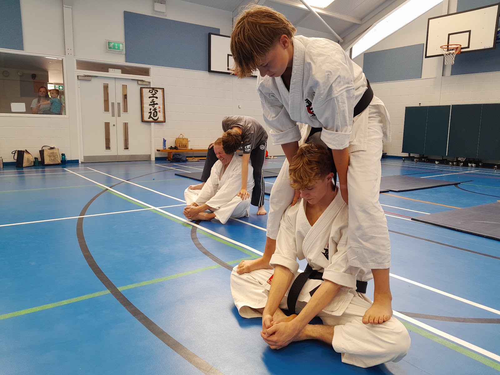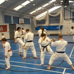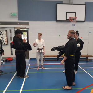 - Sempai Eleanor assists with our recent joiners’ first grading – a fantastic first step on their journey as martial artists.