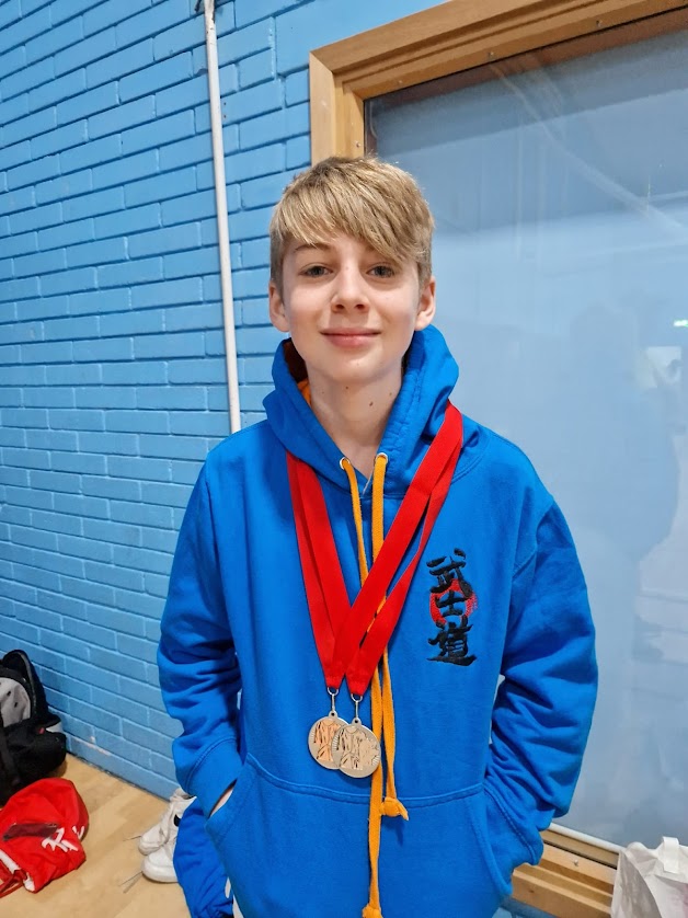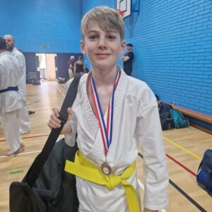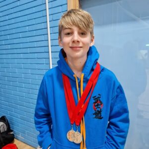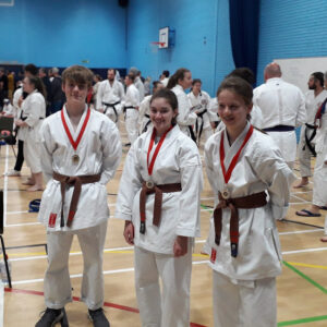 - 2023 tournament medals for 3 of our brown belts: gold for Ewan in junior intermediate-advanced kumite, silver for Charlotte in kata & silver for Eleanor in the junior intermediate kumite.