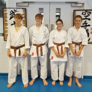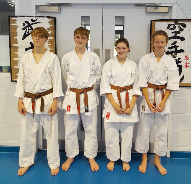 - Congratulations to Andrew, Ewan, Charlotte & Eleanor on achieving their 3rd brown belts (1st Kyu) = one step away from black belt. They are a formidable group of karatekas, who do our club proud