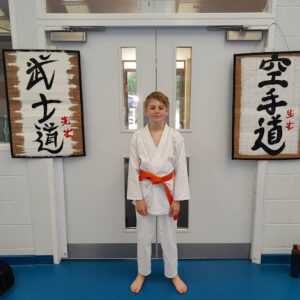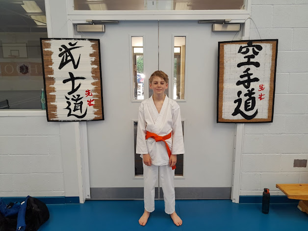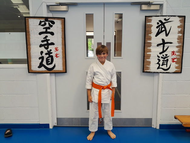 - Congratulations to Spencer on acheiving his orange belt. He is a seriously good karateka with so much potential.