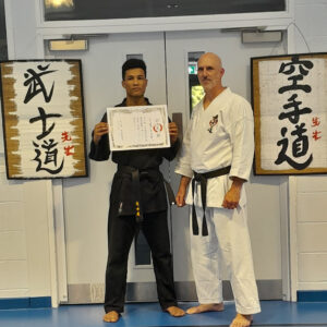 - Congratulations to David on becoming a Shodan – a first Dan black belt. He is an outstanding karateka and I am honoured to have been a part of his martial arts journey